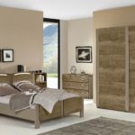 Mélange de laque et de chêne structuré. Éclairages LED sur lit intégrés avec interrupteur sans contact. Intérieur des armoires et tiroirs en finition façon tissu. Équipement des blocs : chargeur USB – passe câble – éclairages LED.