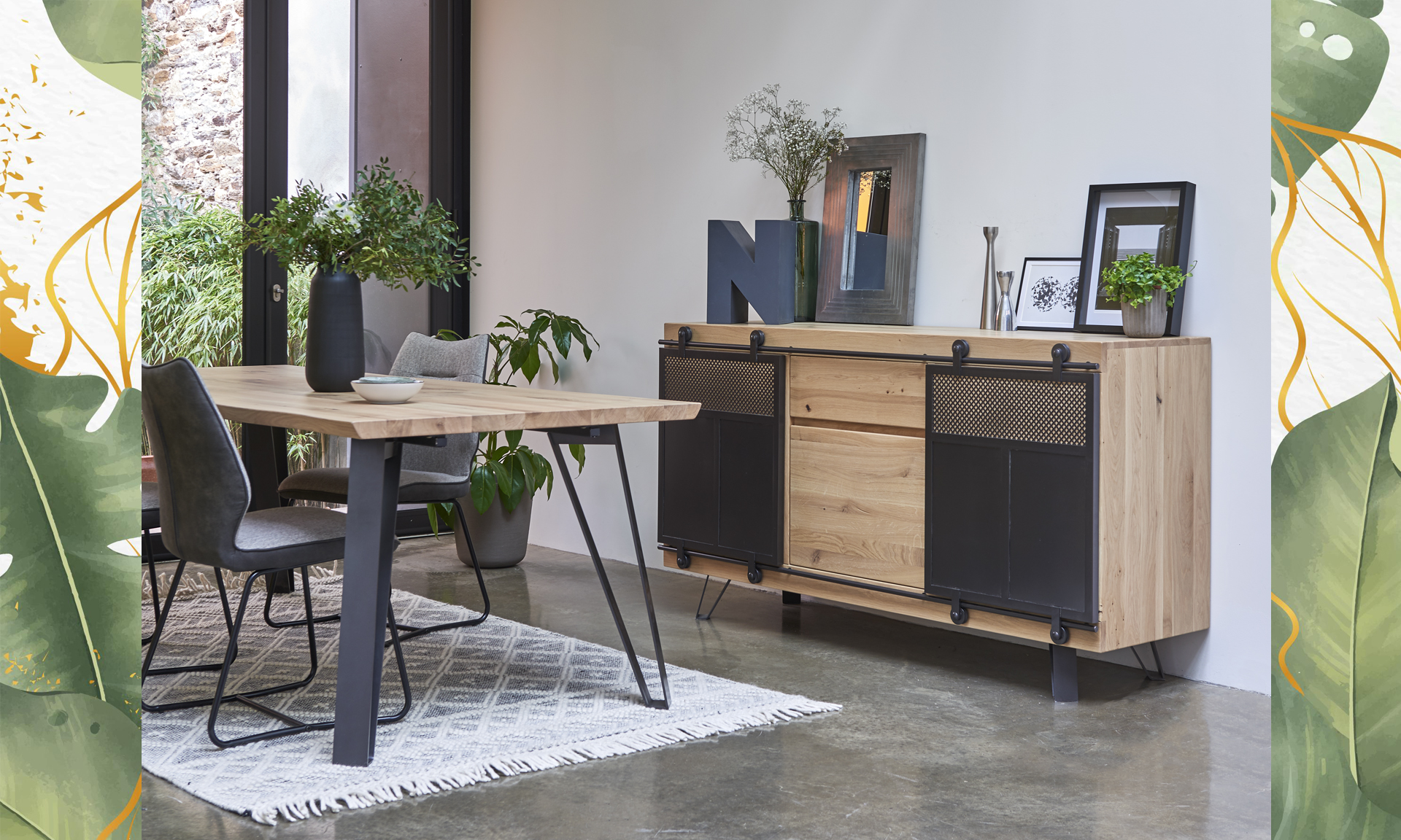 - Enfilade 2 portes métal coulissantes 1 porte battante 1 tiroir L.170 H.94 P.52 cm